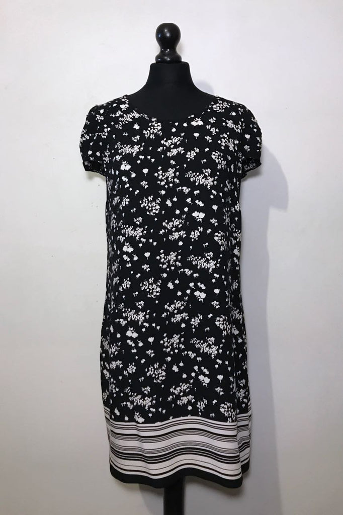 Izmērs: 42, reālais 40/42. Mēri: • garums 88cm, • krūtīs 98cm, • viduklī 98cm, • gurnos 110cm.Ražotājs: F&F.Stāvoklis: mazlietots.Auduma sastāvs: 100% viskoze.