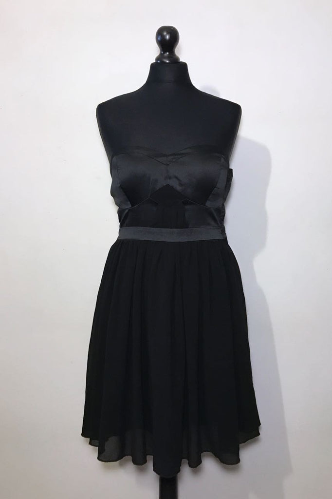 Melna svinīga kleita. Lencītesnav paredzētas, sāniņā rāvējslēdzējs.