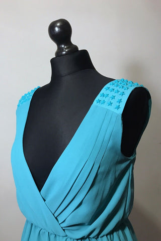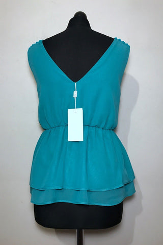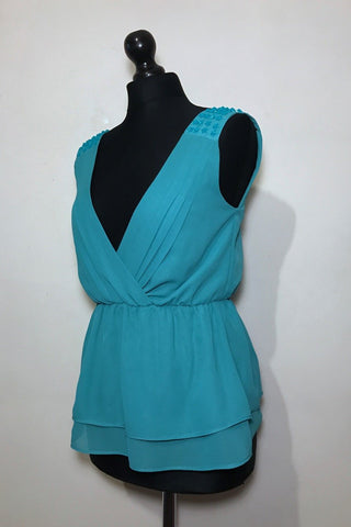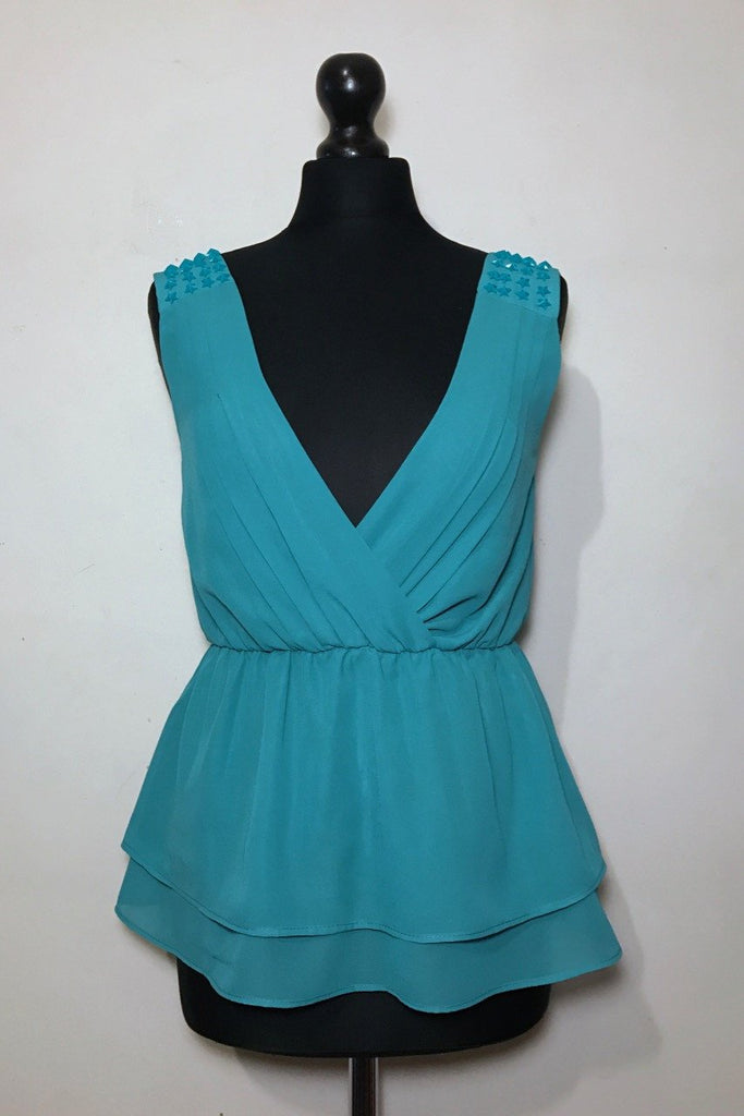Sievišķīgs tops ar zvaigznīšu dekoru plecu daļā, ļoti labi piestiprinātas. Manekena izmērs ir 38, tāpēc tik liels dekoltē.
