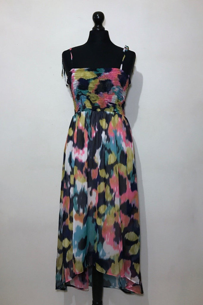 Skaistu krāsu kleita vasarai ar pagarinātu mugurpusi. Ir odere.