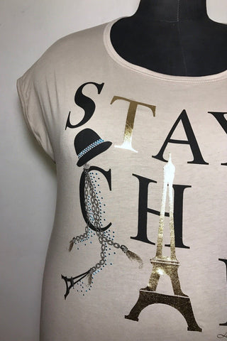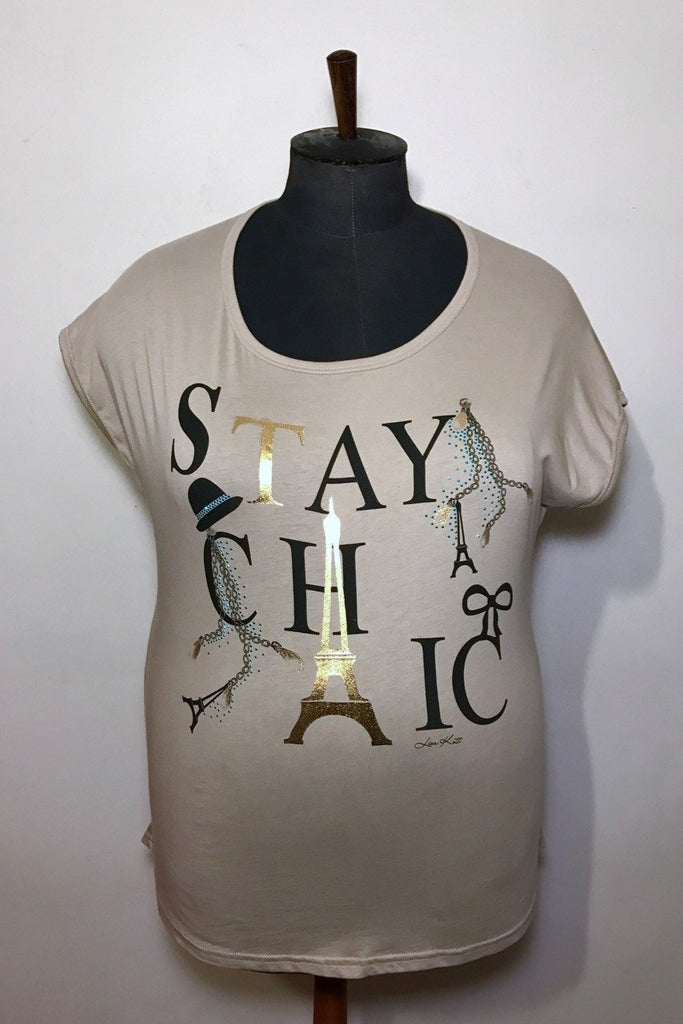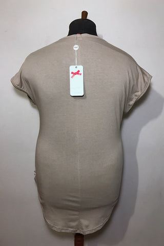 Jauns tops ar uzdruku. Dzīvē tas izskatītos ne tik pieguļošs kā bildē. Audums ir elastīgs.