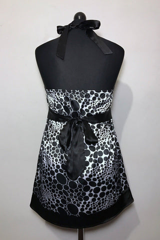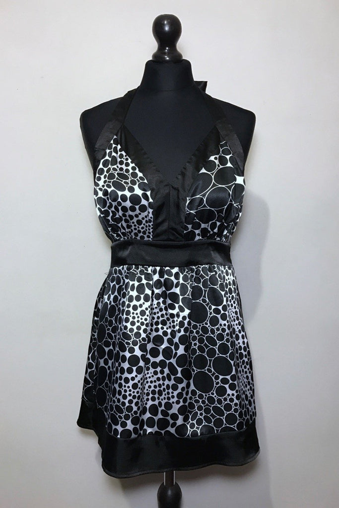 Melni raibs tops, ap kaklu un mugurpusē sasienams.