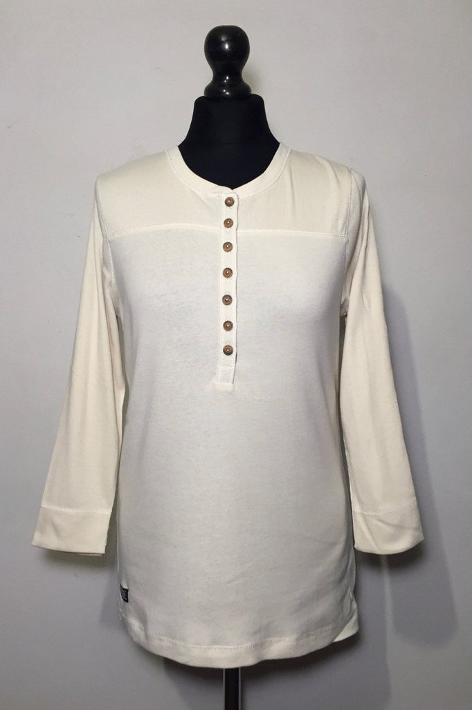 Gaišs tops ar 3/4 piedurknēm. Defekts etiķetei - izgriezta topa iekšpusē.